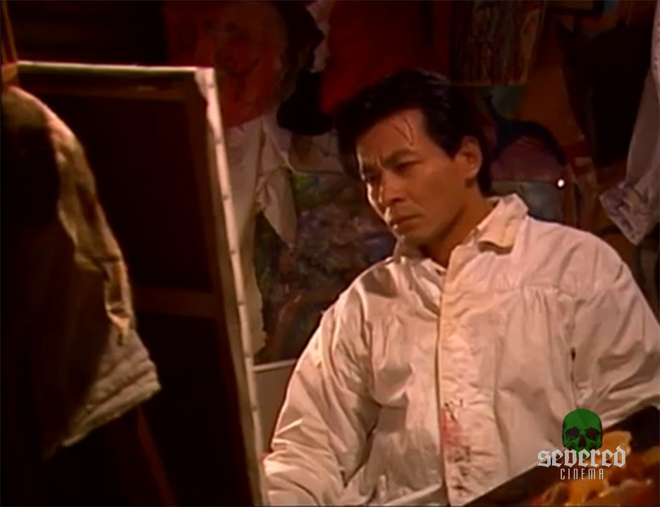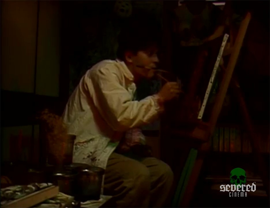 A clock ticks. A Japanese man artfully paints the same dead baby from the sewer. His house is filled with artistic attempts.