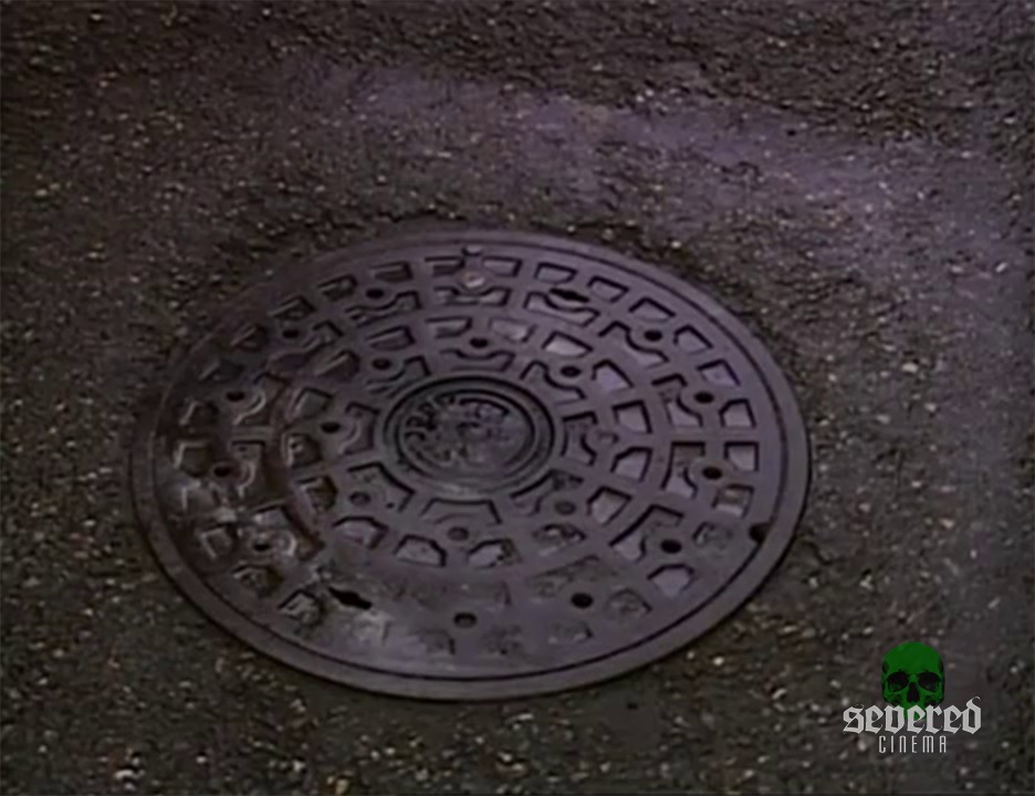 Title card over the dirty rotten sewer. Then a splash of water, caused by what you’re left to your imagination… fade to black.