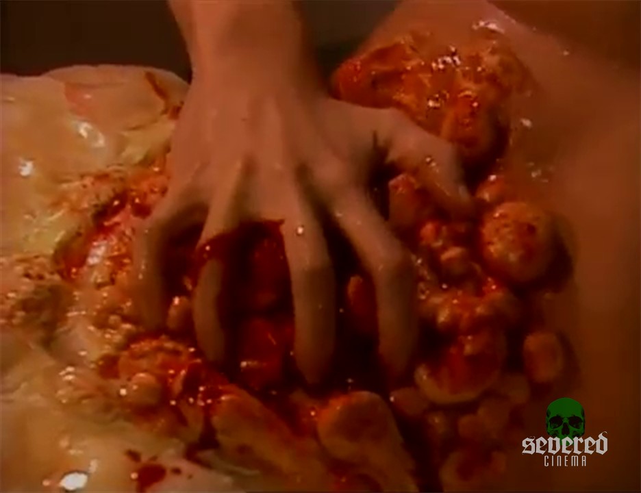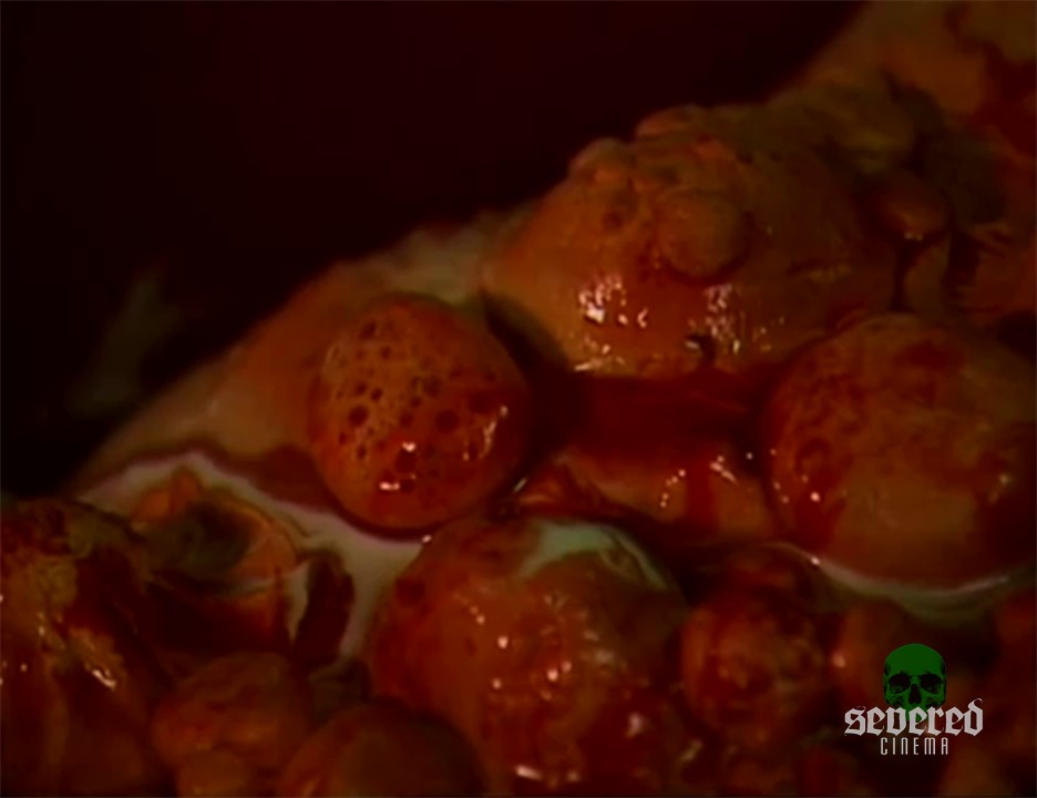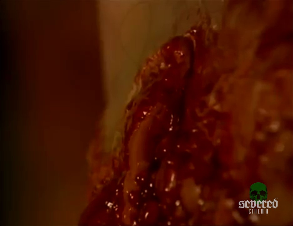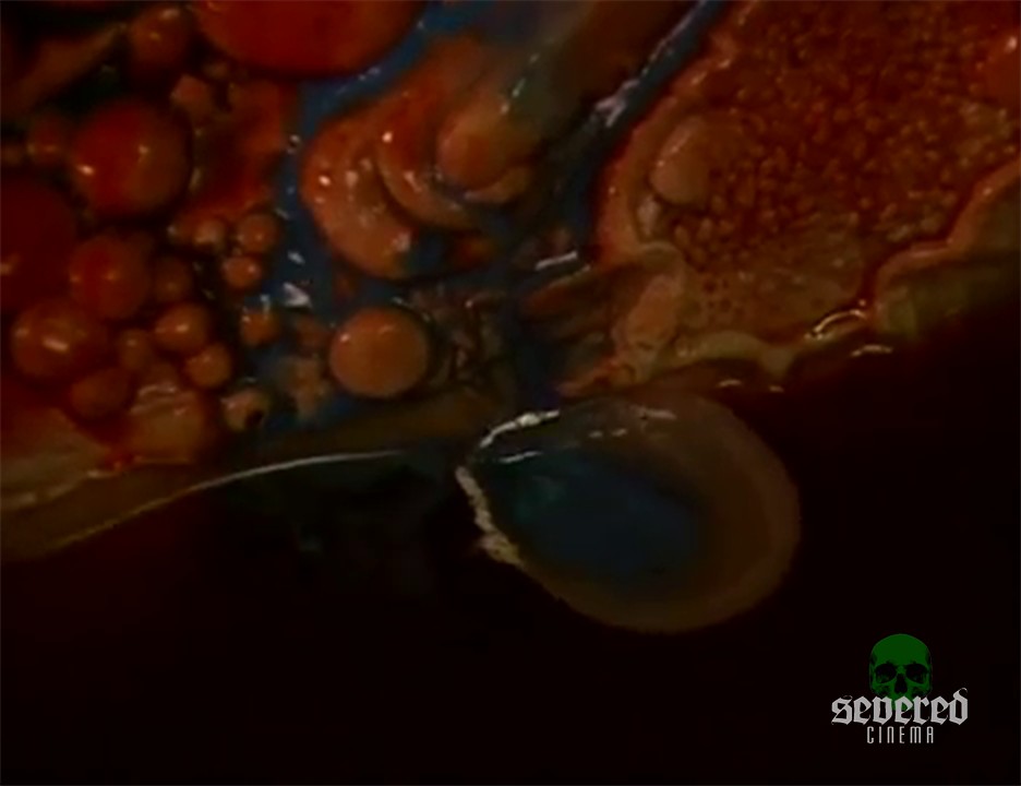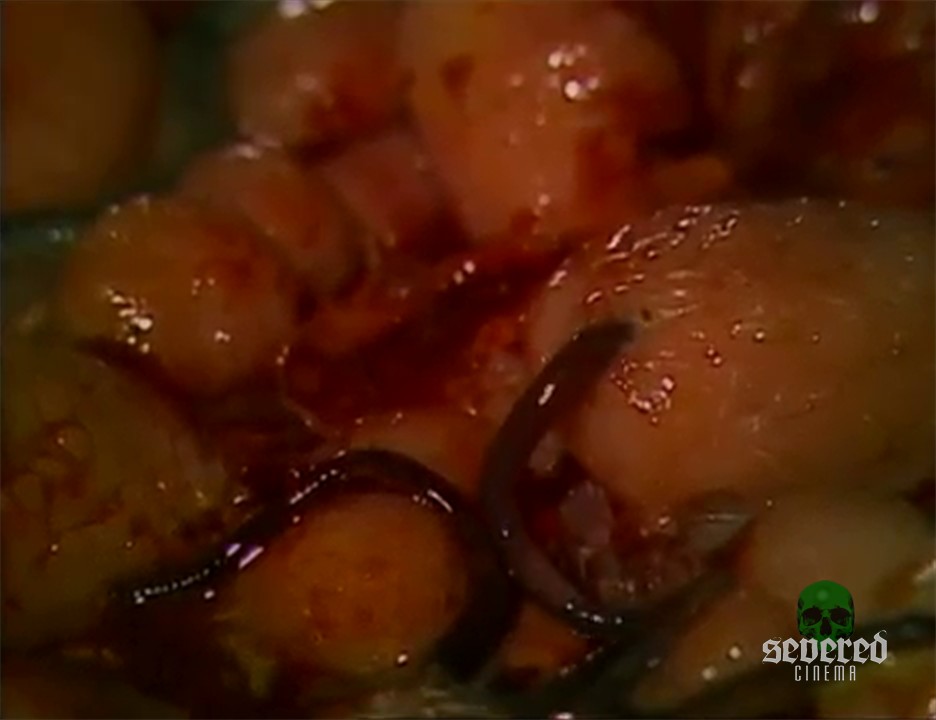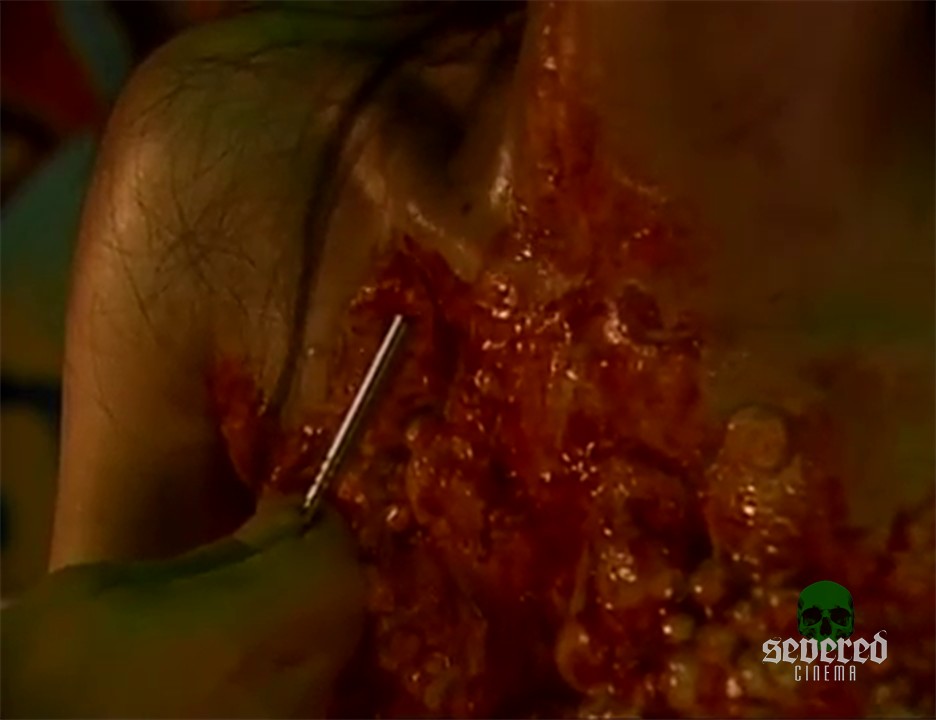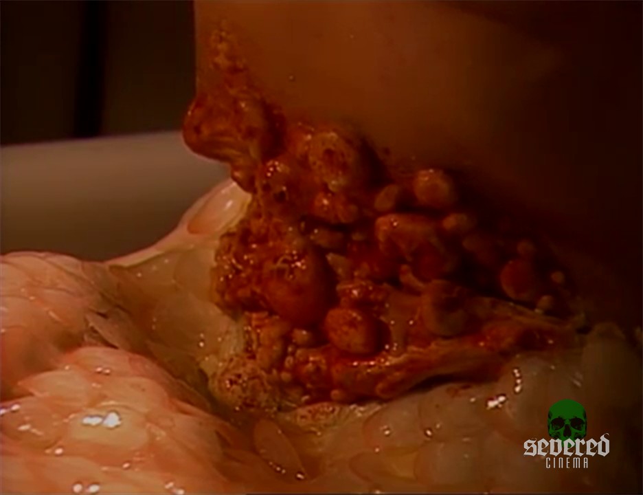 He cuts just one of these bloody nodes and it shoots out yellow puss continuously sending her into an orgasmic tizzy of pain and relief.