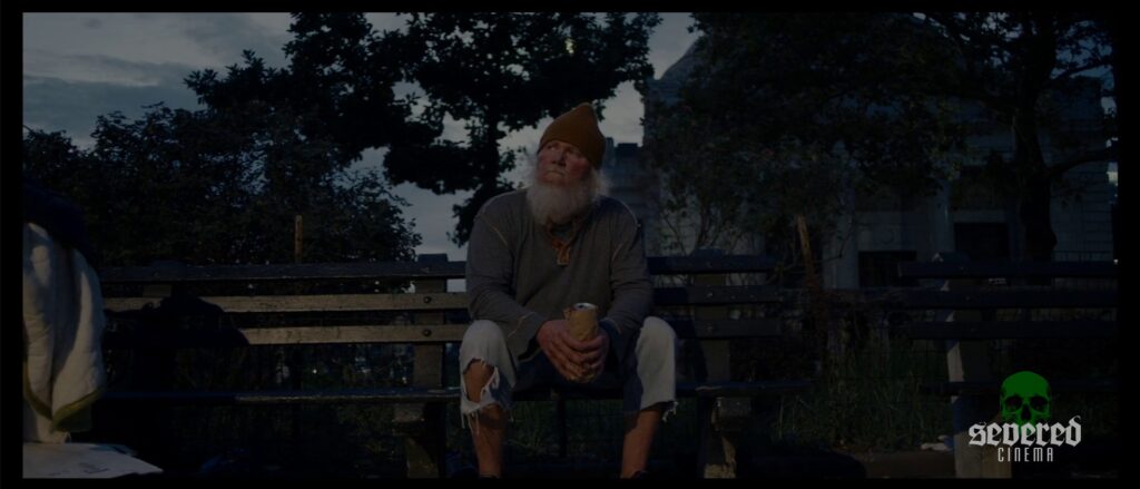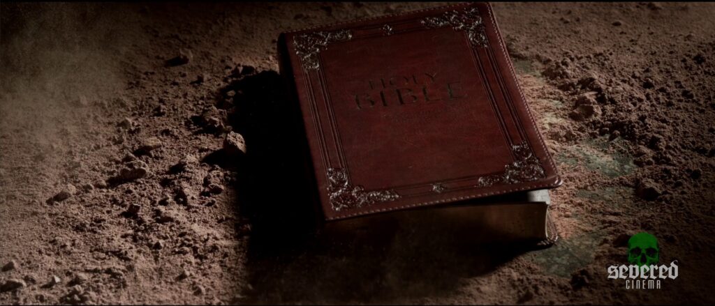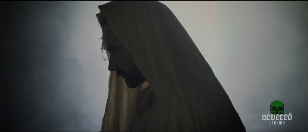 Chapter 3: Helpless – Embrace the Insanity: Black-and-white demonic visions clash with hospital corridors. A cloaked Christ figure wanders fields as “Amazing Grace” plays. Suffering and death are intercut, hammering home despair, but the lack of flow prevents any sort of resonance.