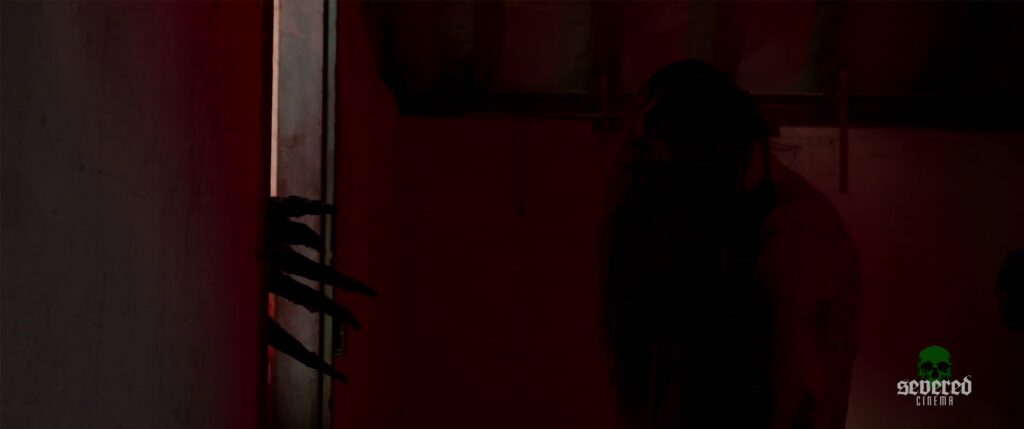 “The closer people come to 45, the closer they come to death!” The P.I doesn’t want any cash; he’s done with it all. Anyhow, Fallon does a bit of digging, finding the whereabouts of the priest. He also has the first of many red lit visions and nightmares that showcase Rachael Painter’s special effects. We saw her at work on the set of Axel Falcon — amazing and absolutely solid. Dunno why she isn’t listed on the IMDb Axel Falcon credits page, y’know! The dreams constantly show his daughter (who we also see in spirit form a few times in the film) her murder, and glimpses of 45.