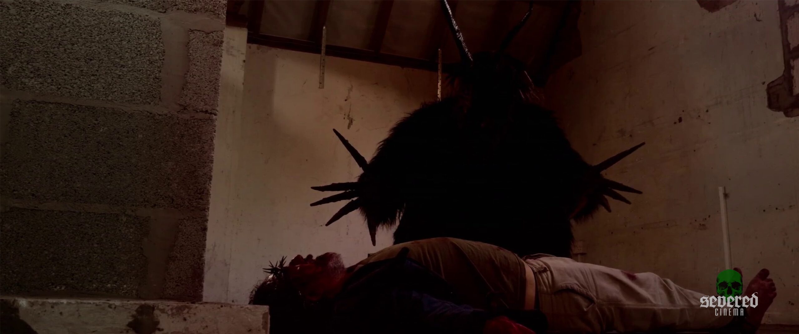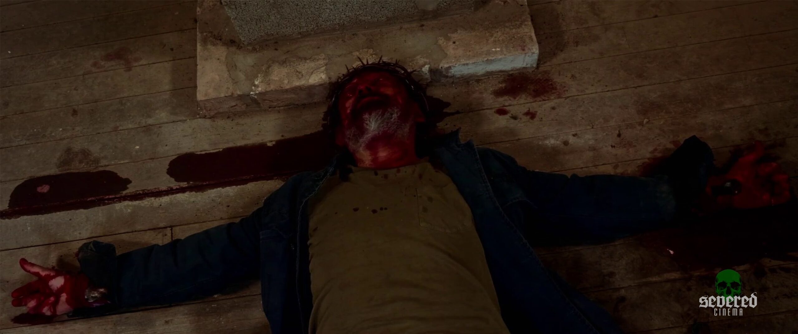Oh dear. We see 45 and I wish he’d stayed maybe in the shadows or with just those glimpses. As Fallon lays back crucified, a big black fluffy fucking teddy beard wearing a mask and wobbly horns drones on and on. Budget is budget, but I’ve seen tight films wisely keep their big bad semi hidden and it works so well. 45 is cuddly, he could be a plush toy with (wobbly) horns.