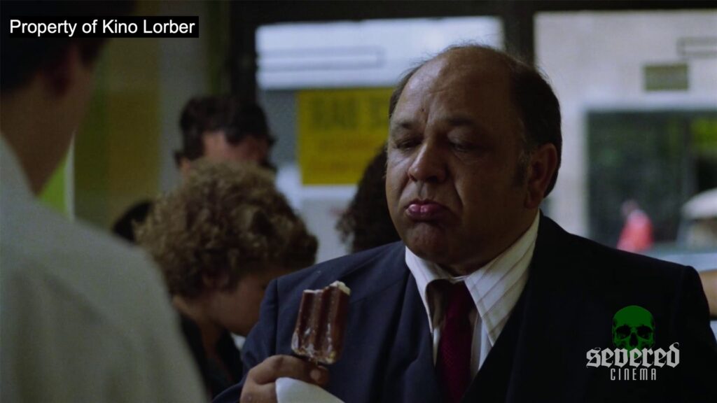 Back to our food artist, his name’s Gus Soltic and soon we’ll find out more about him. In the meantime, he makes a call on a battered payphone to the apartment of a very rich family, asking the whereabouts of a certain teenage girl. The late Cliff Gorman, of Angel and Ghost Dog: Way of the Samurai, presents an already twitchy and unhinged personality. This guy was never short of work on movies and TV shows yet never had a big break.