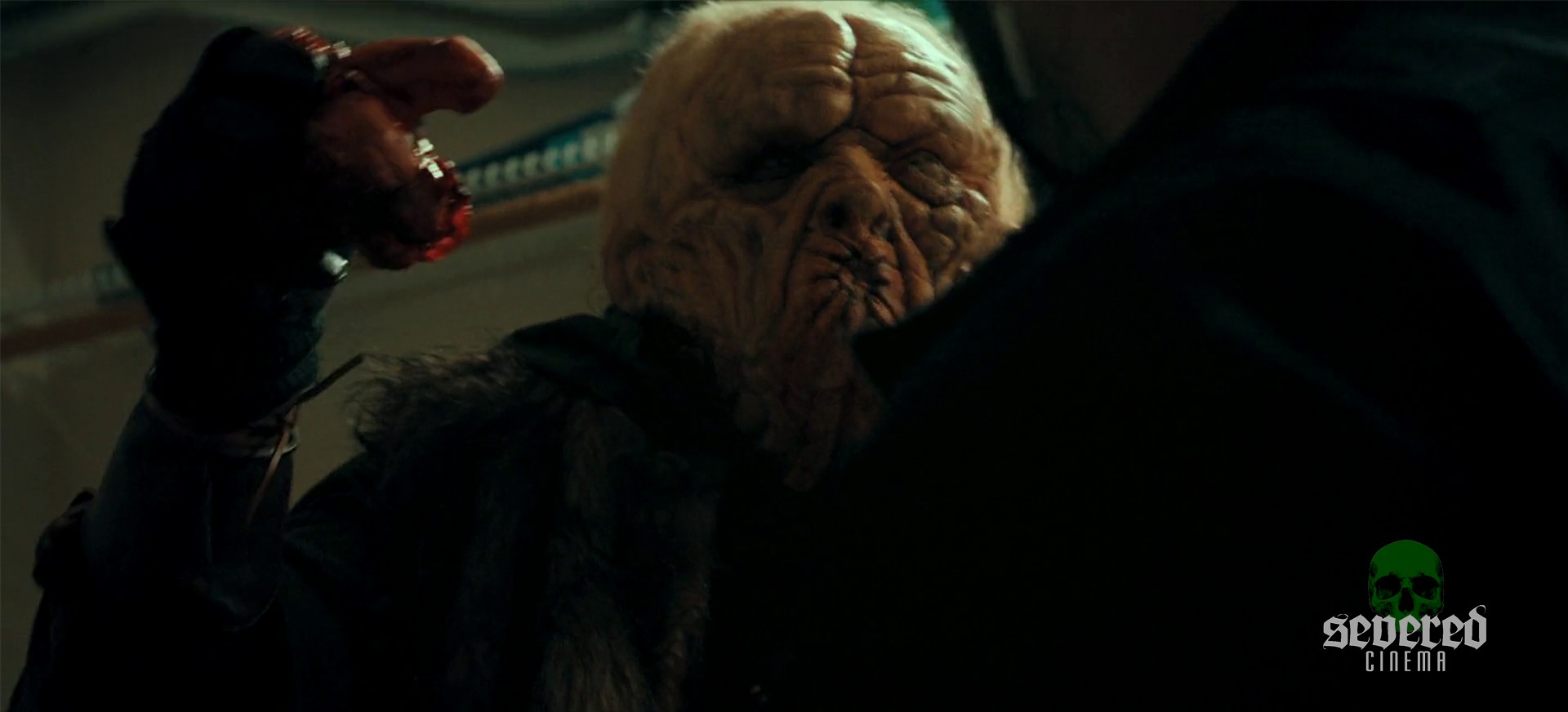 More quirk to come as a cult of Anunnaki believers are visited by the fiends in hoods. Blood spray indicates their end. Sure.