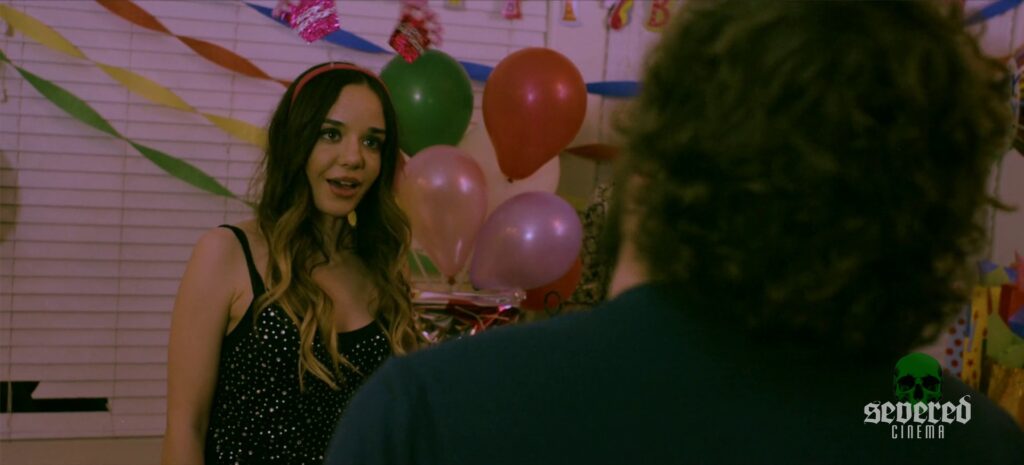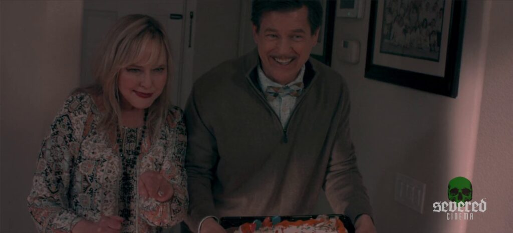 Crazy 21st party of a sad sac girl, whose creepy parents sing zanily and drop her cake on the floor and keep singing anyway. They act creepily and falsely positive. Twin Peaks-style family values here. The girl who is 21 doesn’t look them in the eye (classic victim response) and she’s scared.