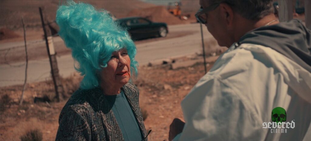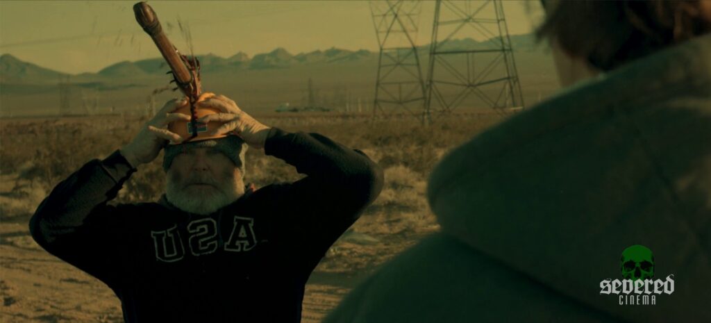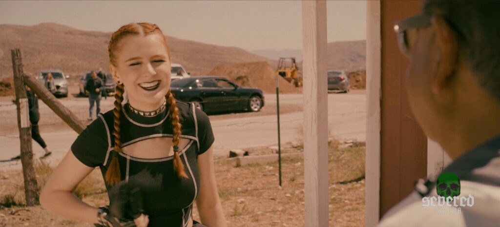 Prolific schlock horror Director Shawn C. Phillips has a fun one here with Desert Fiends (2024). It is a successful attempt at creating a Terrifier/grindhouse-styled film. It’s fun, engaging, and well directed with the character quirk-o-meter set to 11. We are literally in the low budget ‘80s again with this quirk-o-sphere cast!