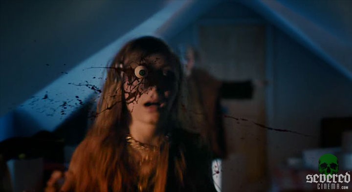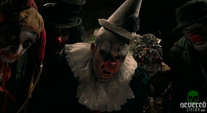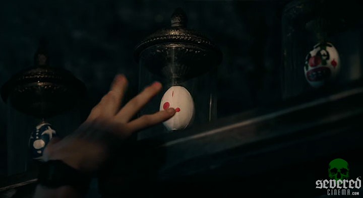 As the evening progresses, however, one guest needs to come back. Stitches has to finish his party. It’s his comeback show! Testicles, arms and ears are torn off. Brains are ripped out, eyeballs get popped by umbrellas… These magic tricks are amazing! Tom and Kate sit quietly as he tells her what he witnessed at the graveyard. Meanwhile, Stitches quips and makes his way through the ones who were responsible for his death. The jokes are truly comical — down to visuals including the ‘I just died in your arms tonight’ moment, and the ‘hare in your throat’ scene.